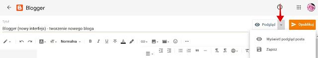 ostatnio, że w inny sposób Blogger pokazuje opcję "zapisz" (widać to